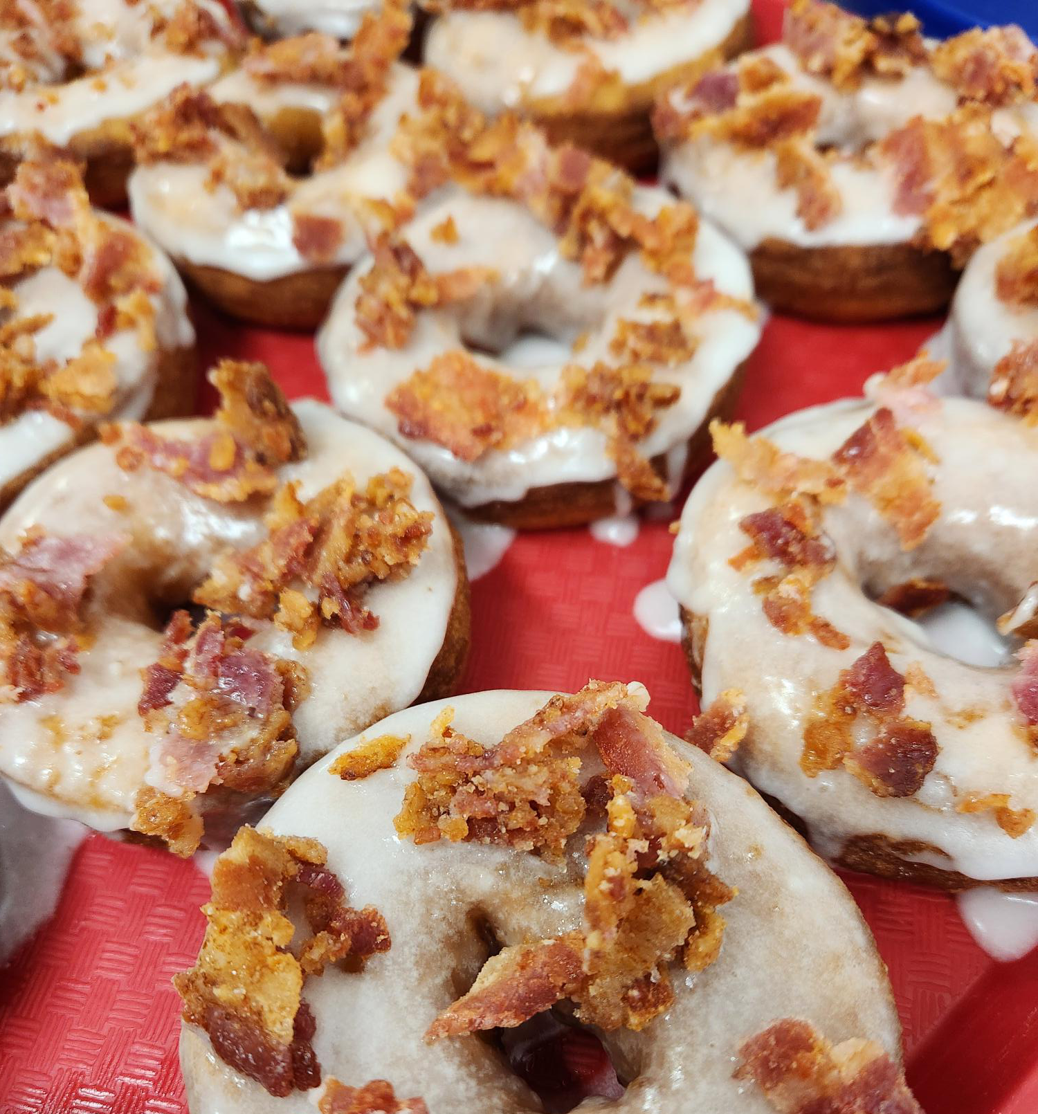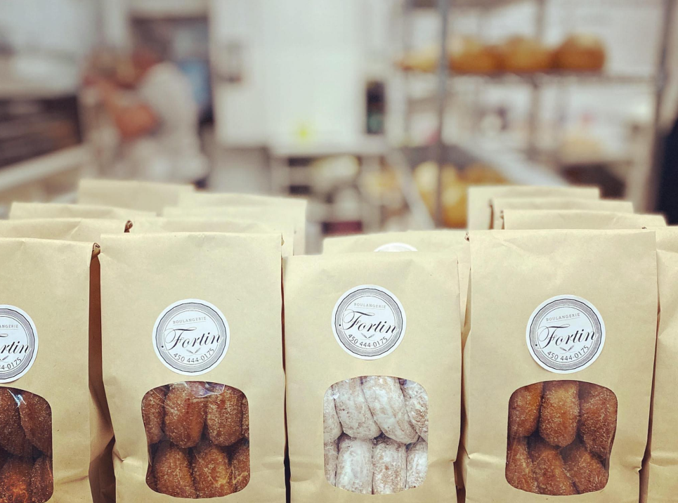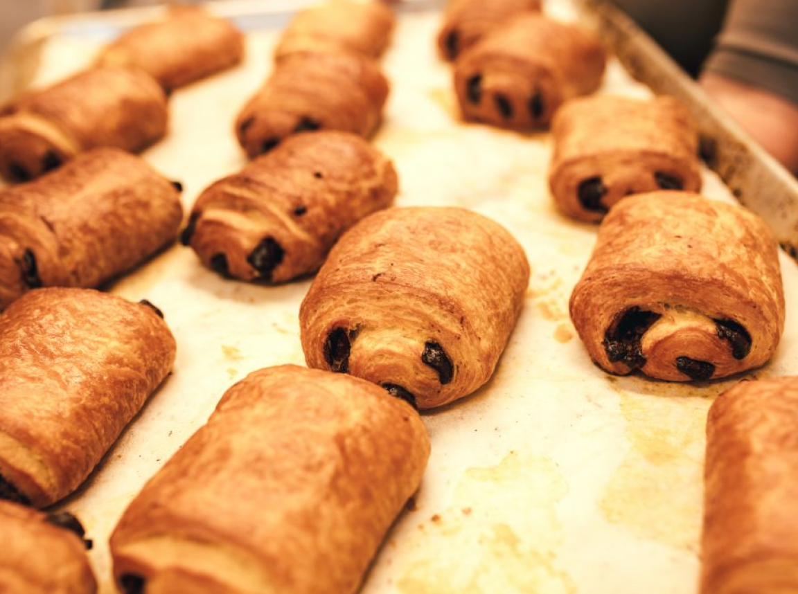 Nous avons eu un croissant aux amandes, un croissant au chocolat et aux amandes, une baguette, un petit pain à la cannelle et des beignets.